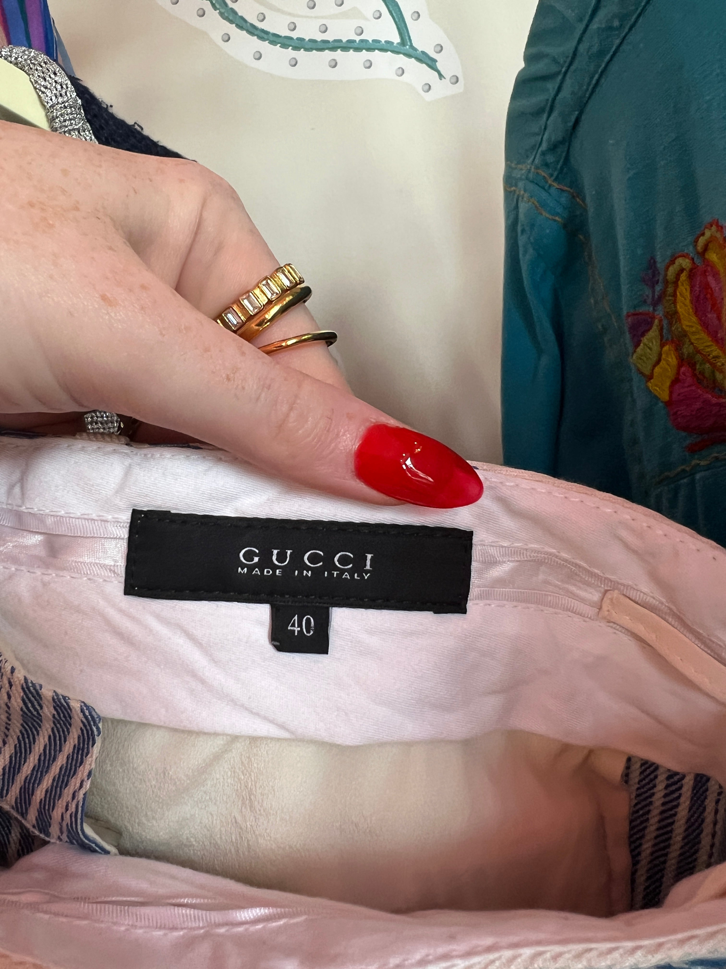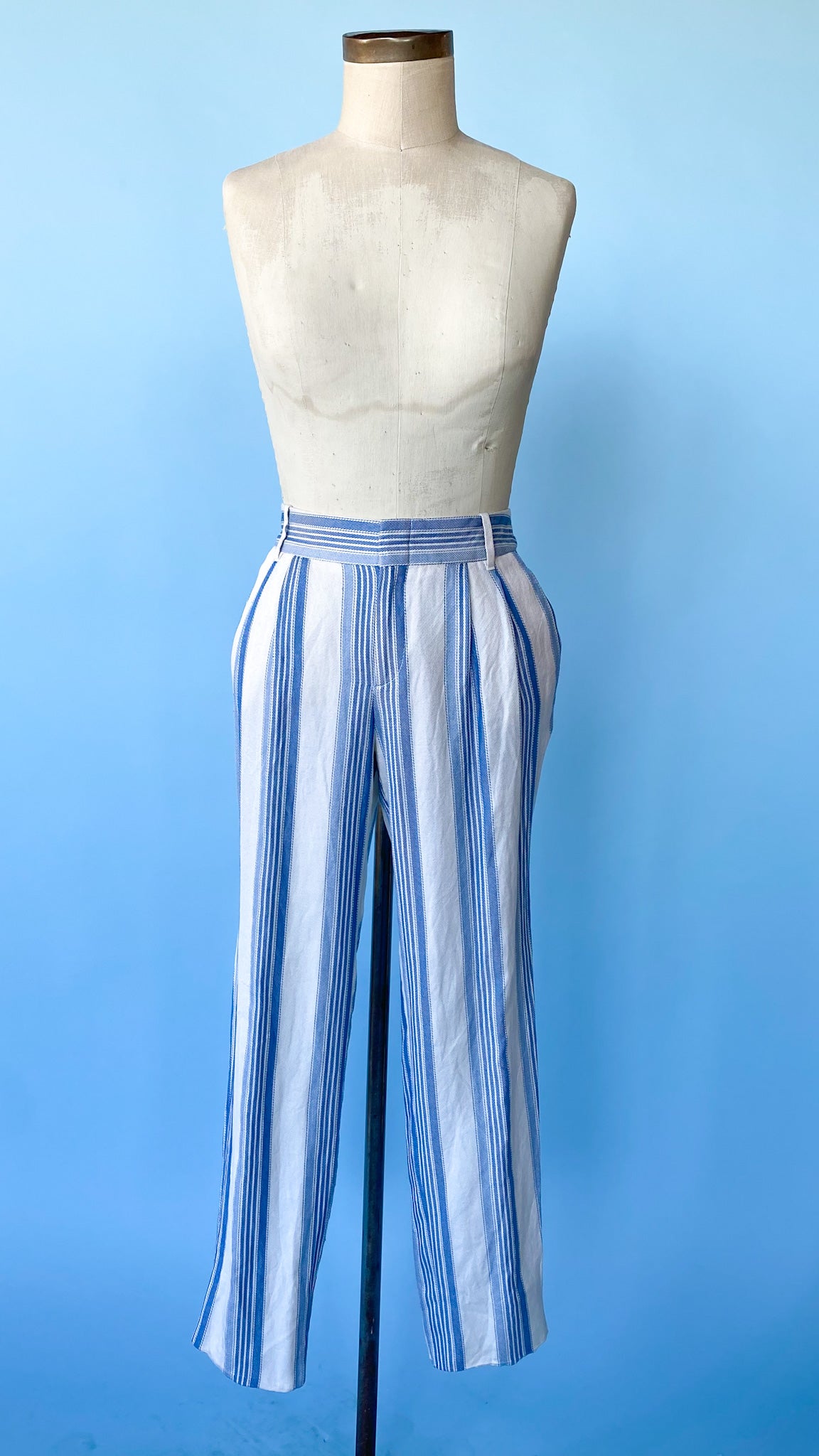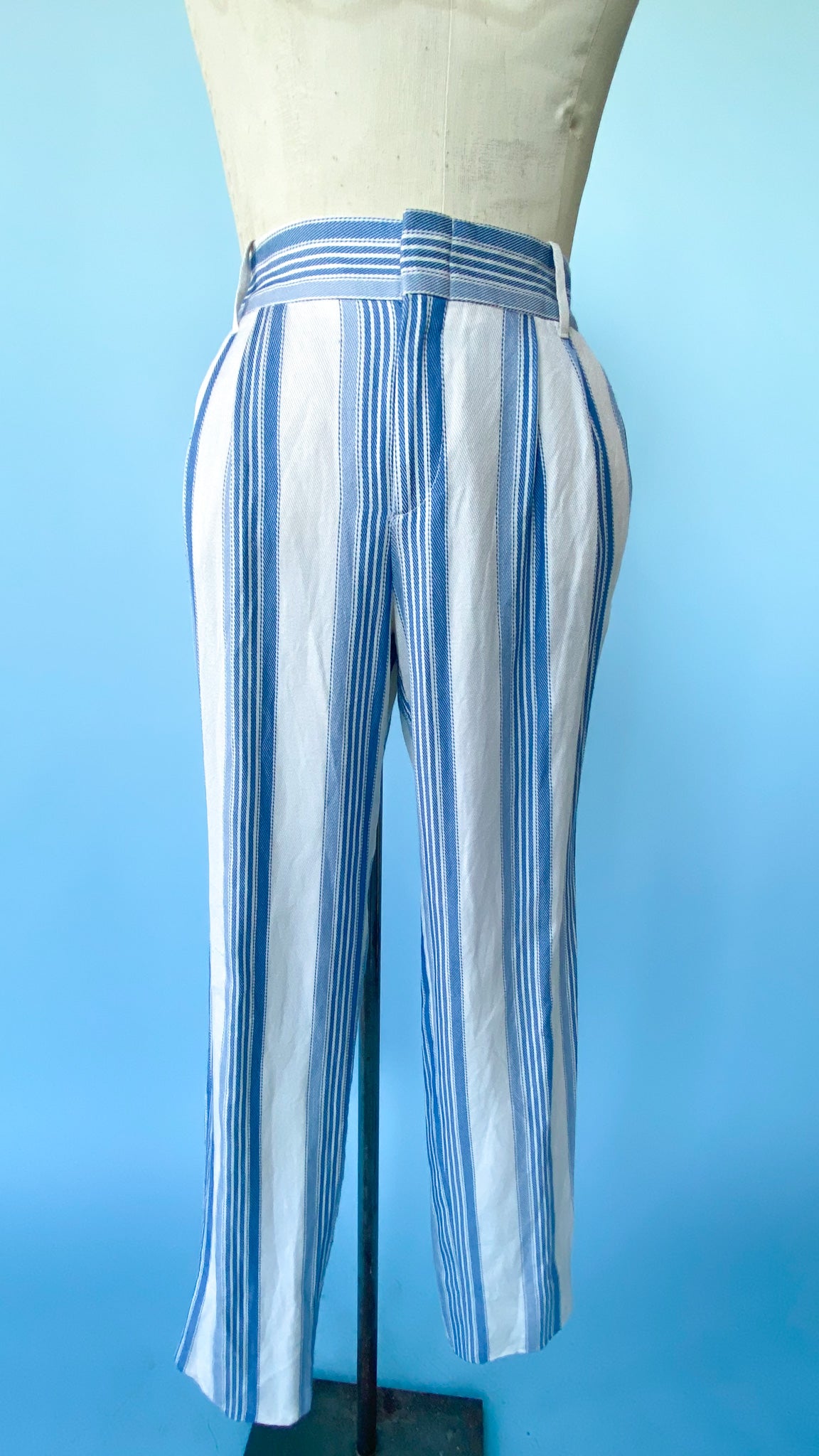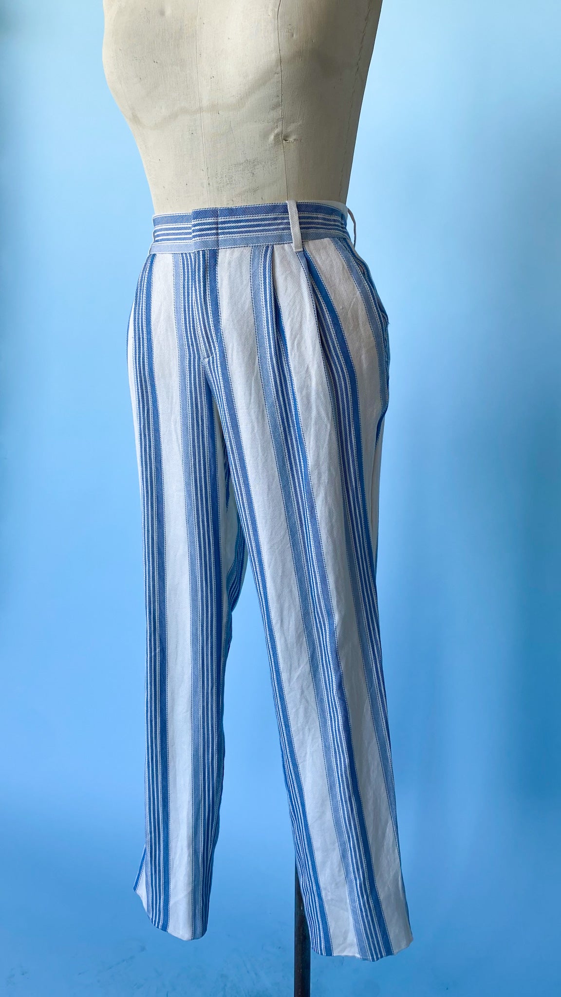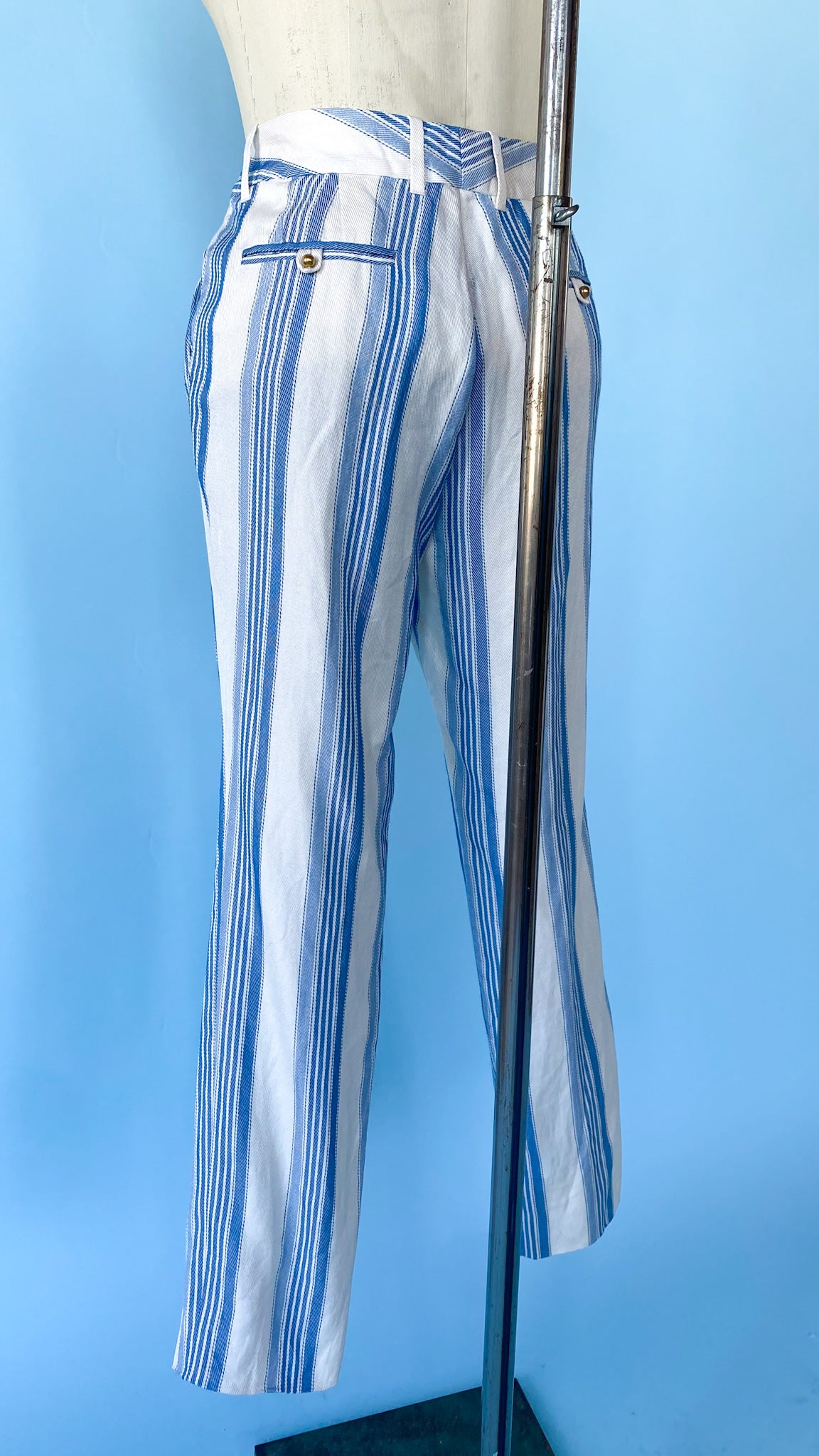 Y2K Used Gucci Blue & Cream Pinstripe Pants, sz. M