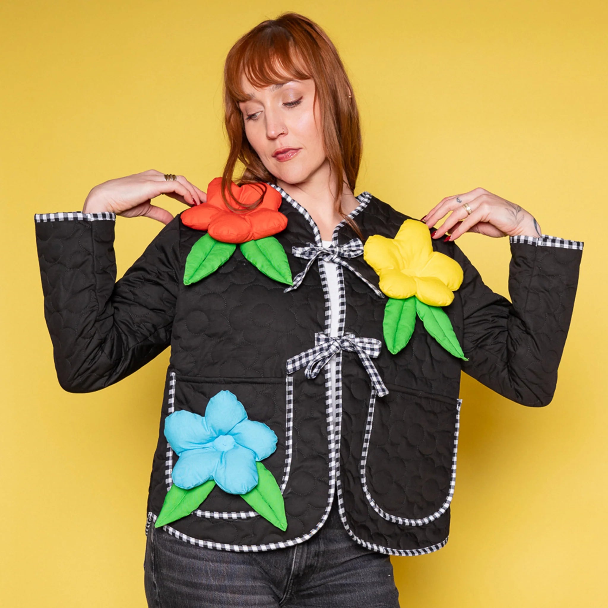 The Joey jacket is your perfect wardrobe companion! Made of 100% cotton, its quilted with the cutest floral motif and adorned with 3D puffy flowers. Lined with gingham for some extra flair, the Joey jacket is your new go to!