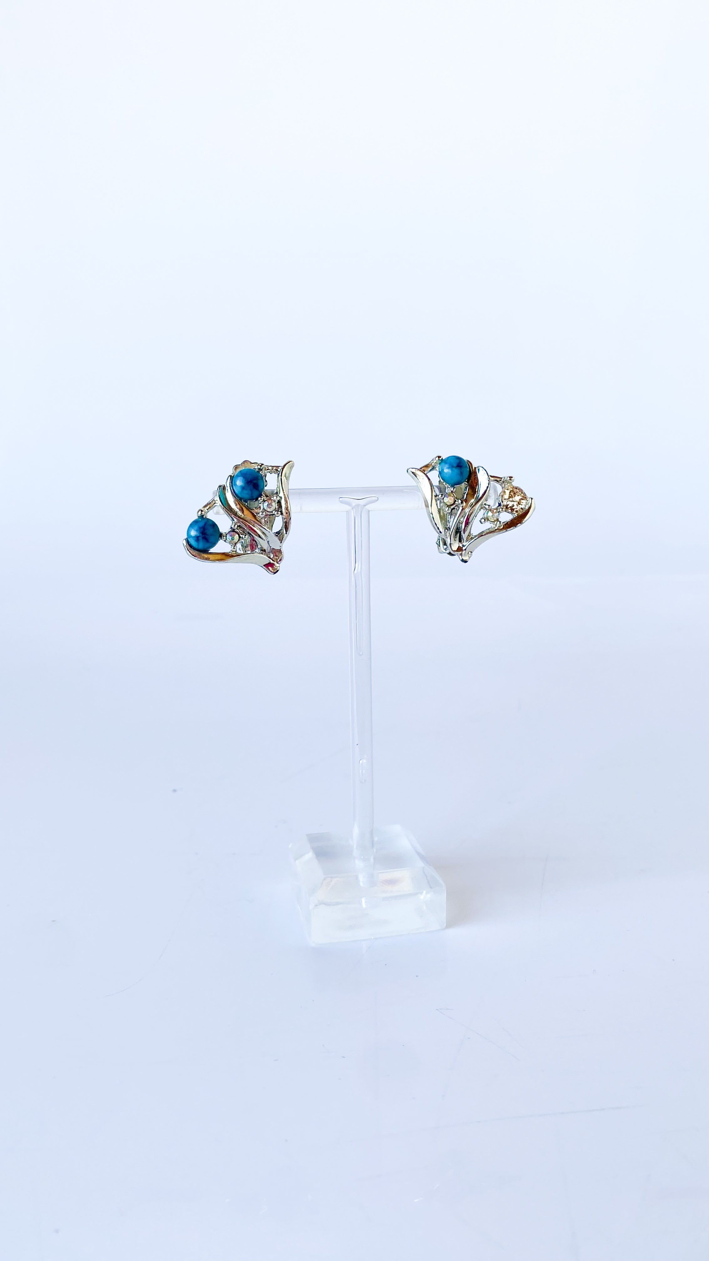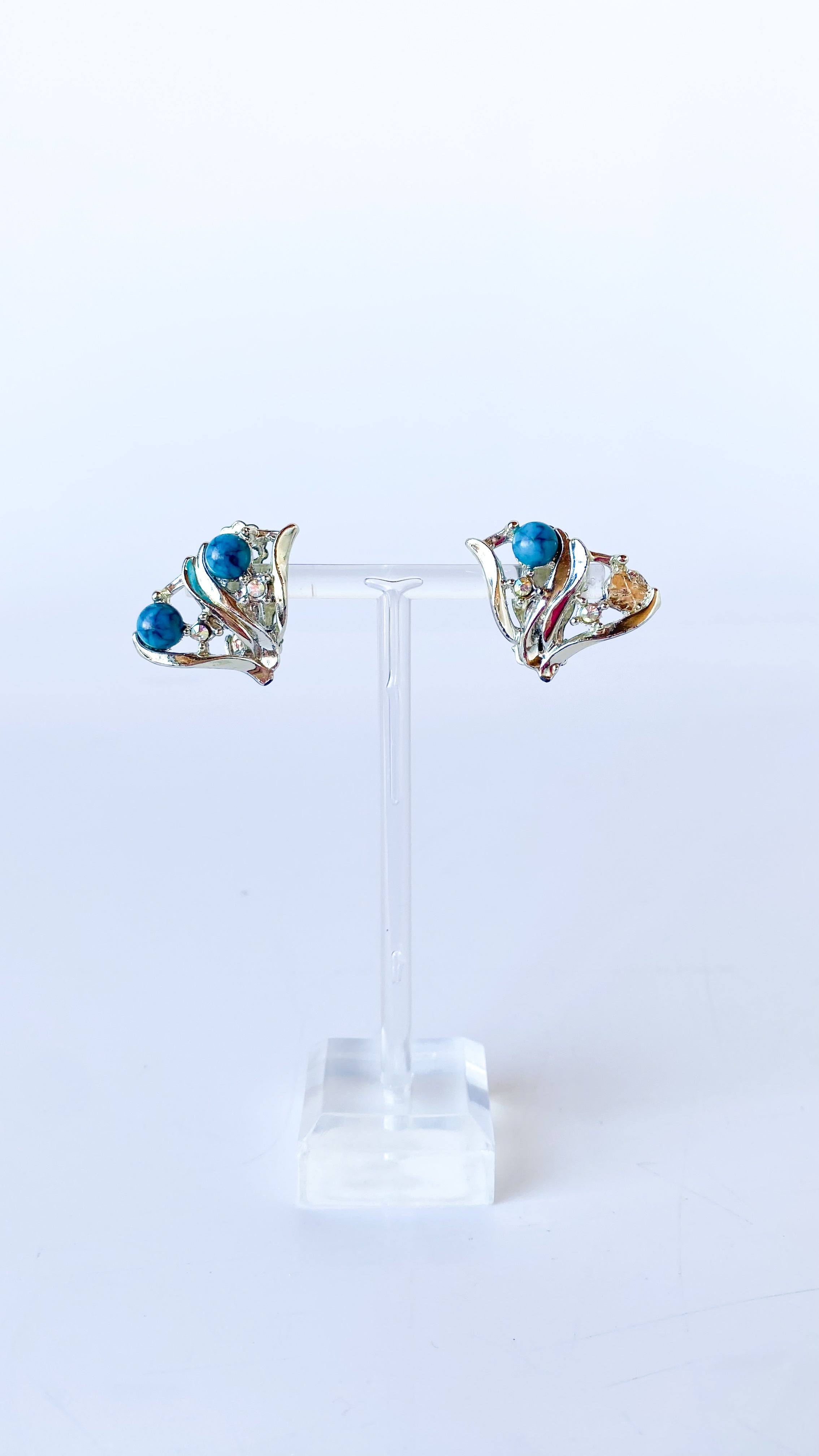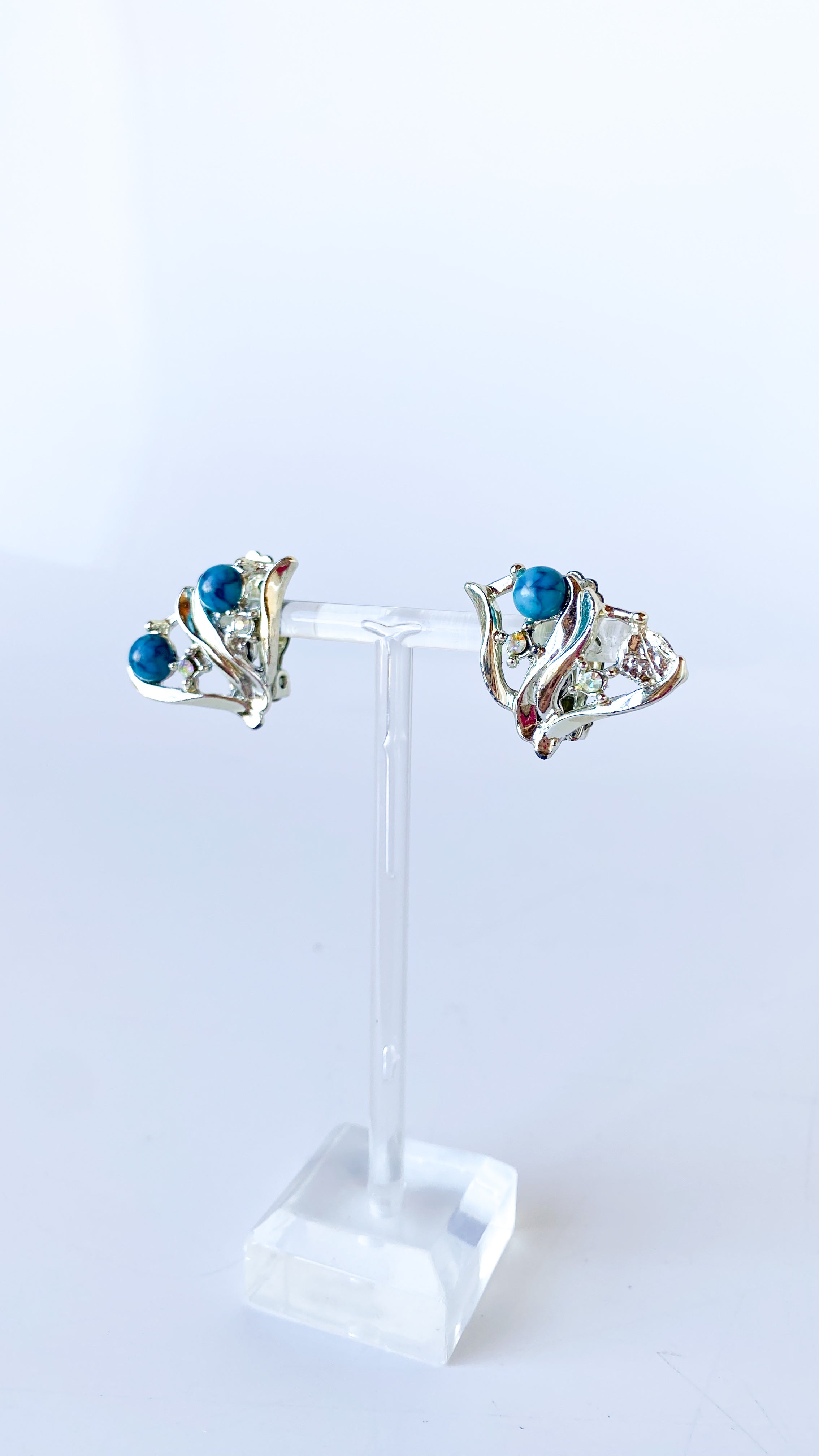 Silver & Turquoise Rhinestone Clip-On Earrings