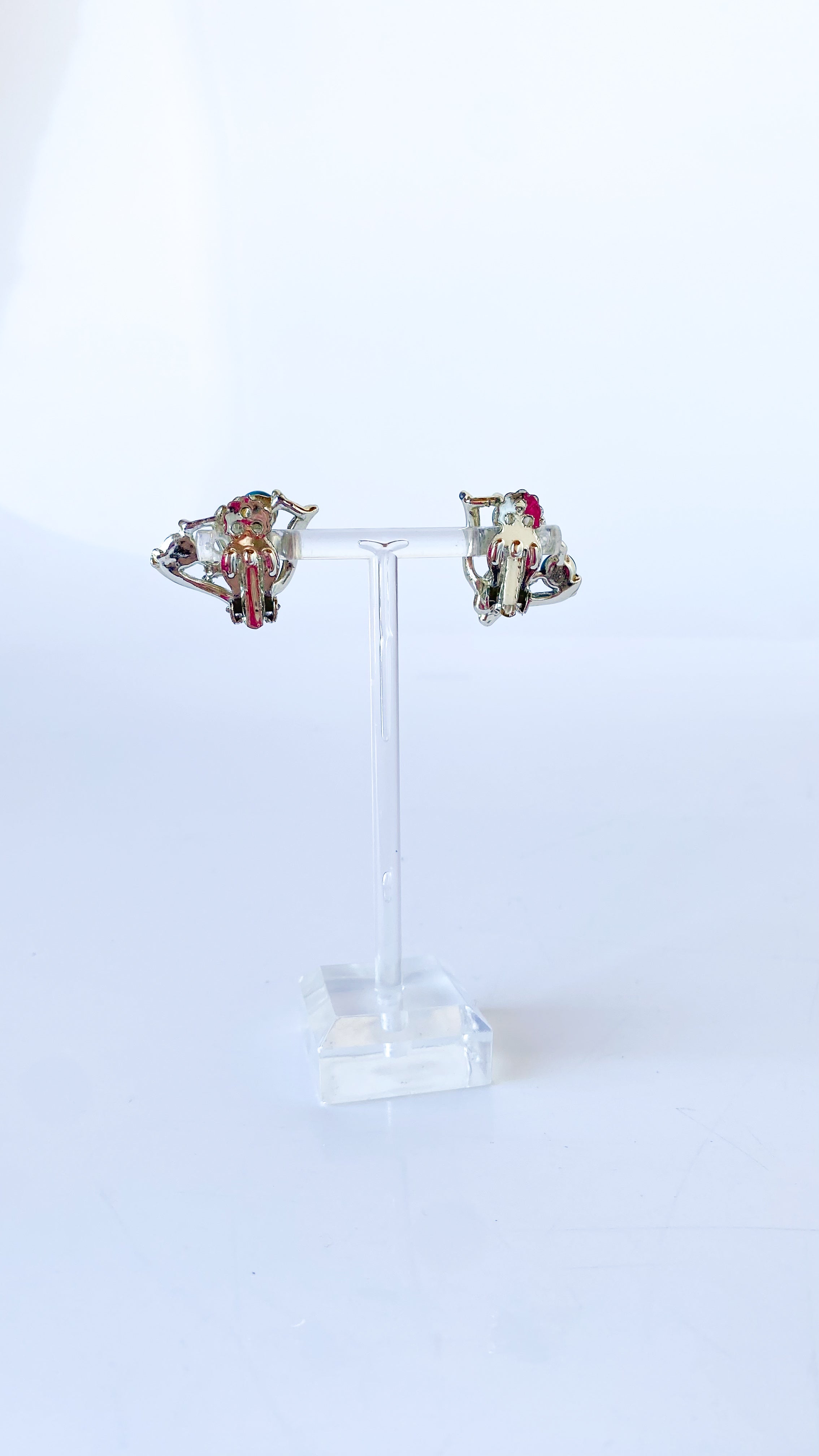Description: Silver earrings with rhinestones & turquoise stone details. Has flat clip-on backing. Has matching bracelet.