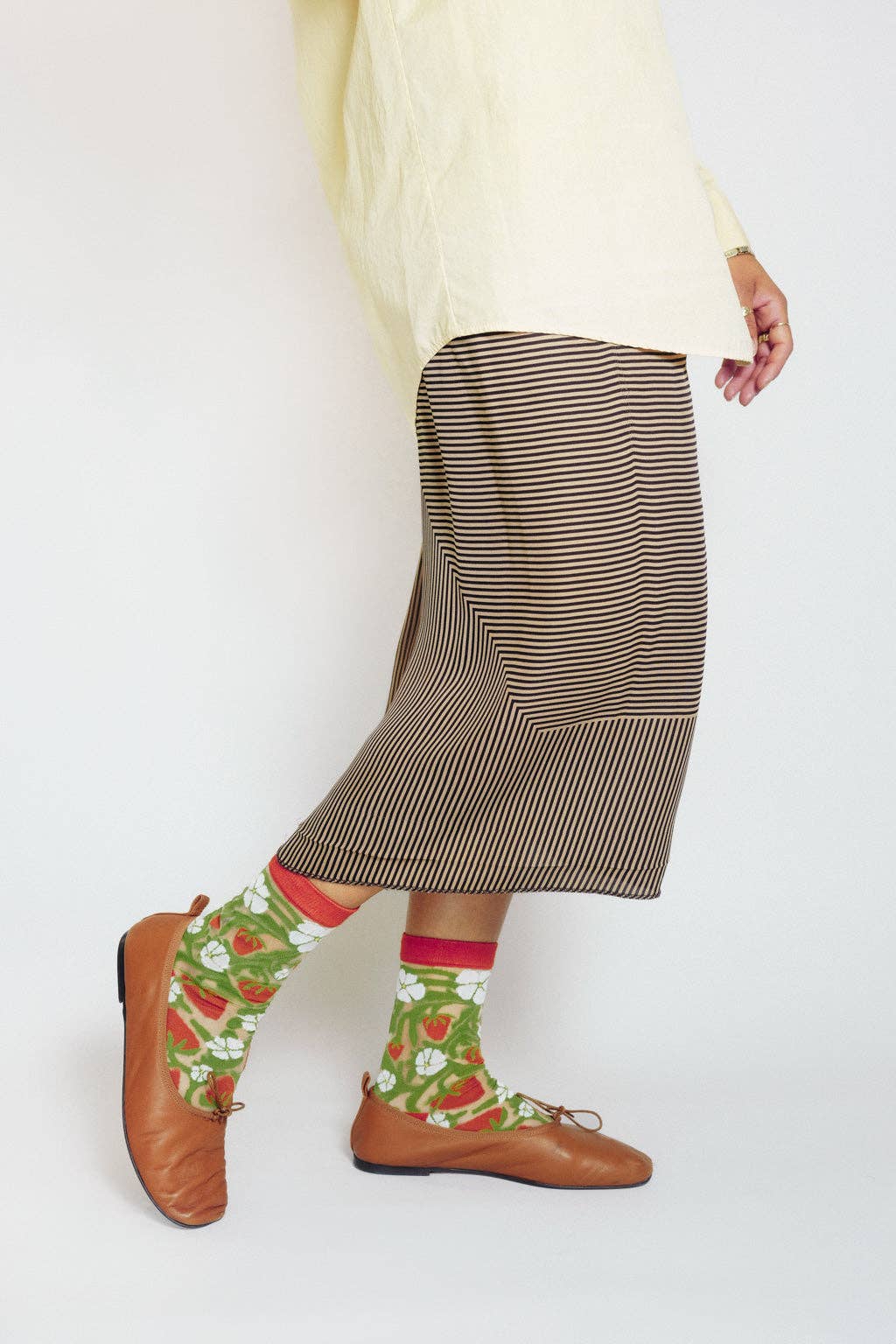 Natalia Skeba is an Orlando based digital designer, painter, and mixed medium artist. The Strawberry sheer is Natalia's personal favorite and pulls inspiration directly from nature. This sock is lightweight with a reinforced heel and toe designed to hug your feet.