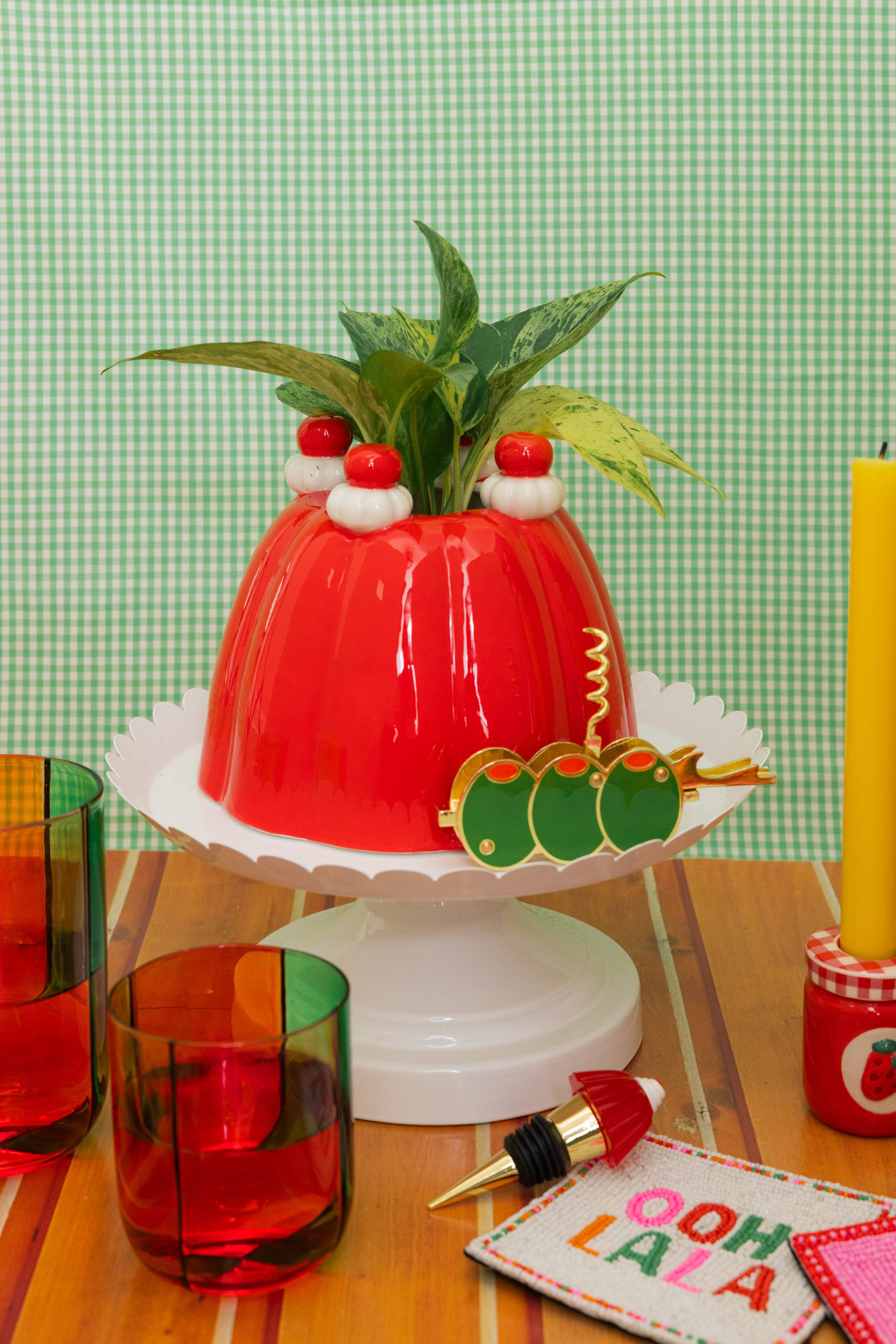 Jello molds are beautiful. And jello molds holding flowers are even more beautiful. This ceramic vase is ready to be the centerpiece at your next party.