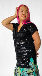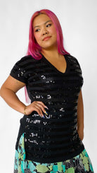 Y2K Black Sequin Top, sz. 1XL-4XL