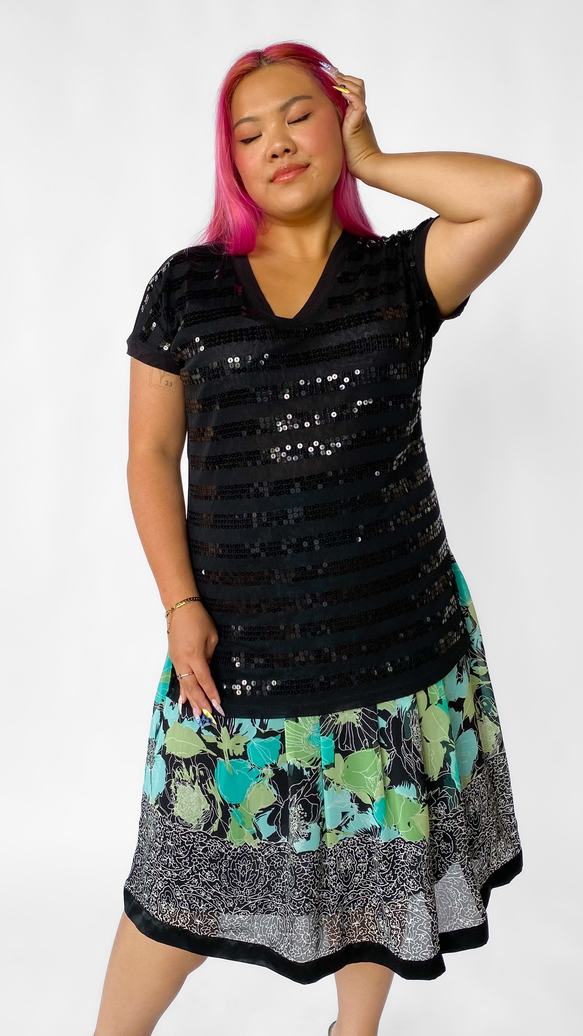 Y2K Cool Tones Pleated Abstract Floral Skirt, sz. L