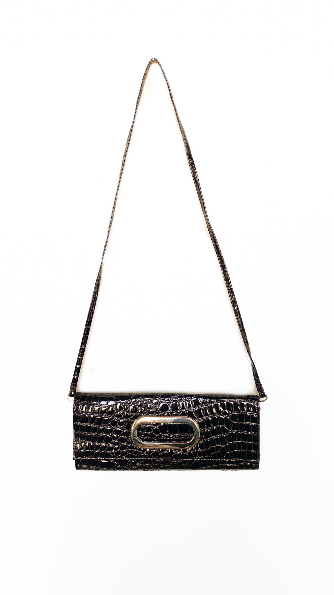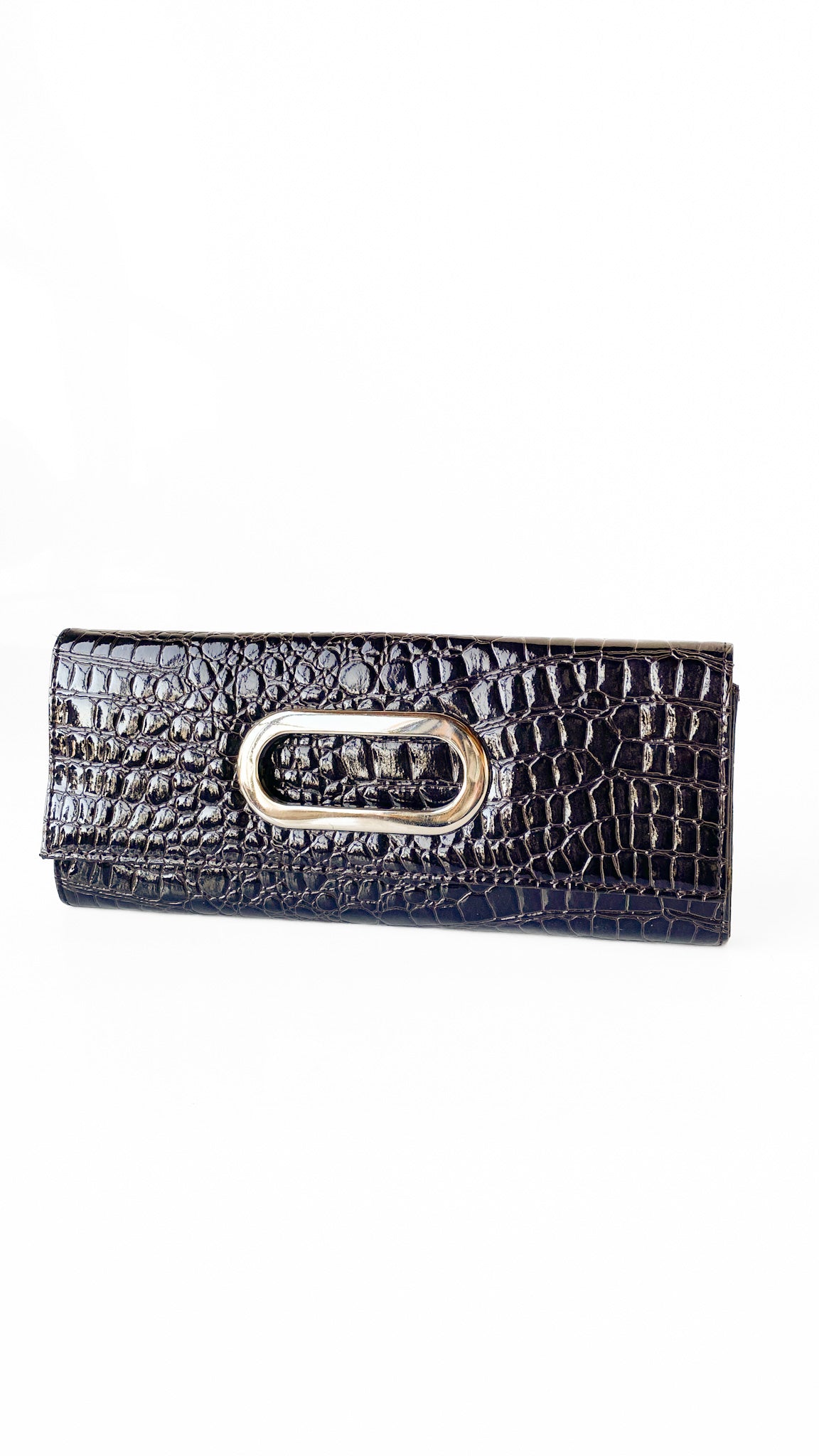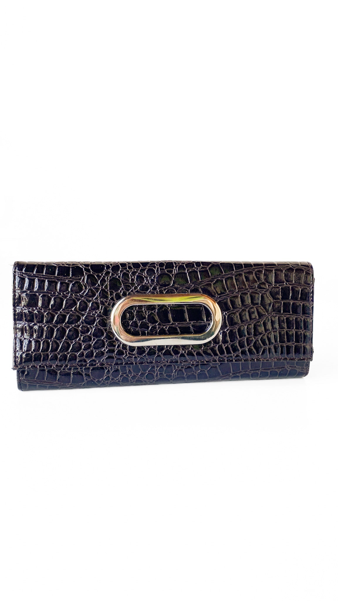 Y2K Dark Brown Faux Crocodile Clutch